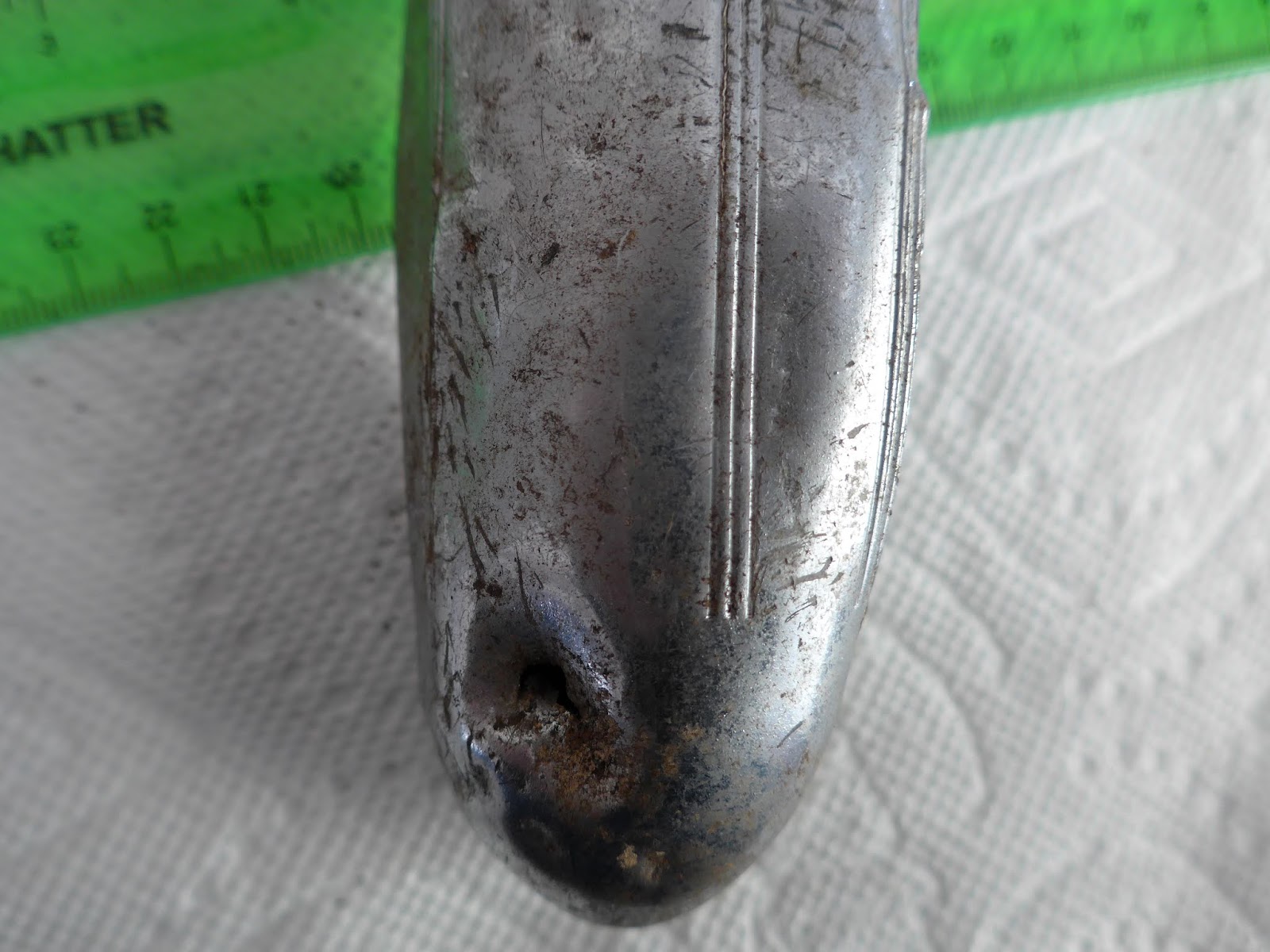 Photo #3: While the flashlight has retained much of its reflective brilliance, it is pitted with small scratches and puncture marks.